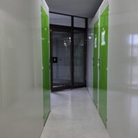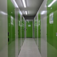 帯広市内の中心部に近い好立地に、建物外観に緑を基調とした安心感のある看板を配置しております。トランクルーム内部は、防犯カメラの設置と入退室を電子錠で行うセキュリティ設備を完備し、様々なサイズの収納スペースを用意しております。